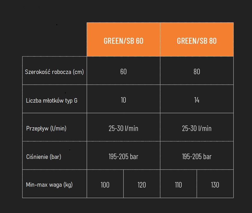 Mulczer serii GREEN SB to hydrauliczna głowica mulczująca do koparek masie roboczej od 1,5 do 2,5 ton, przeznaczona do lekkiej pielęgnacji zieleni i idealna do rozdrabniania trawy i jeżyn o średnicy do 1-2 cm.