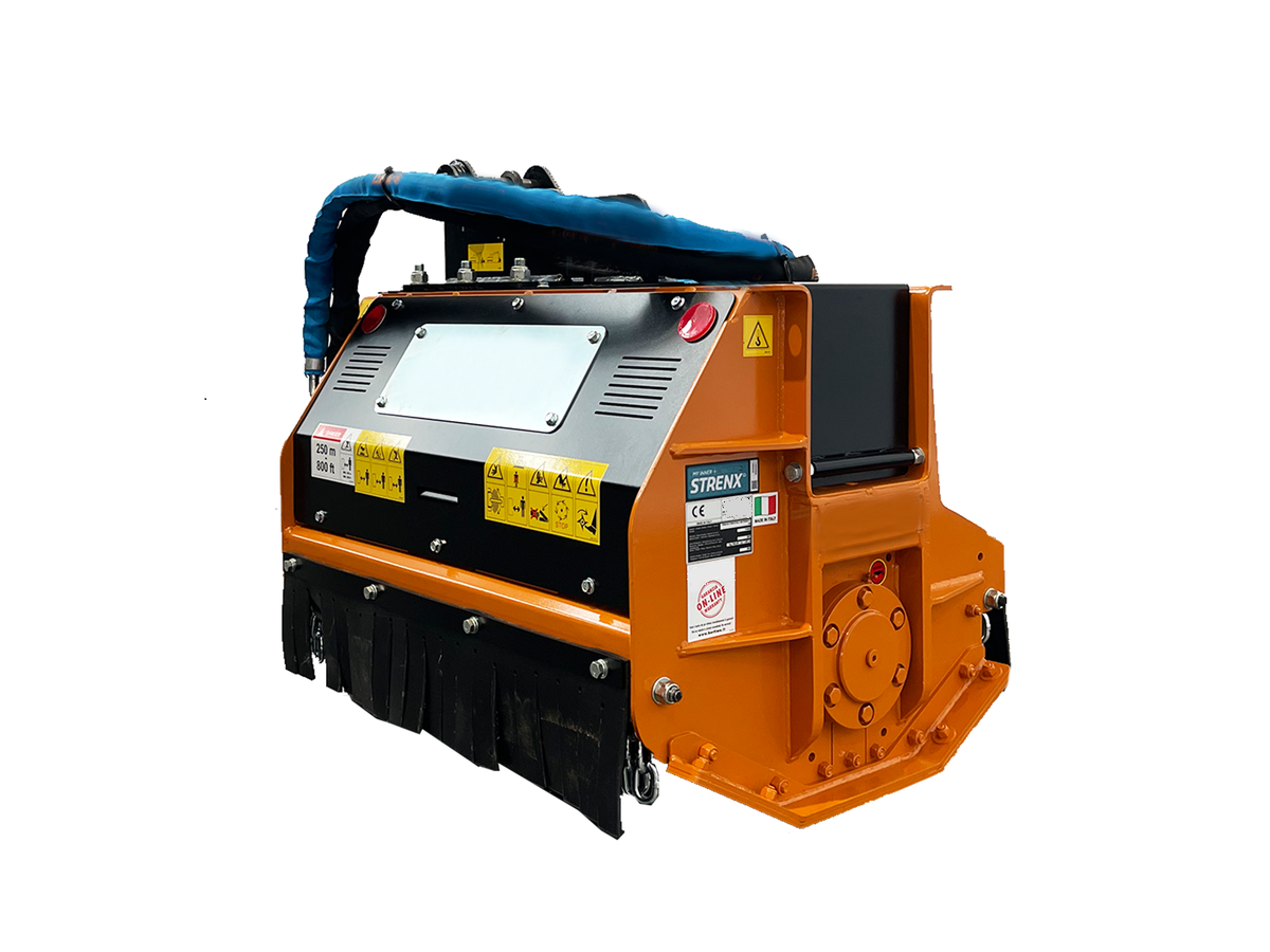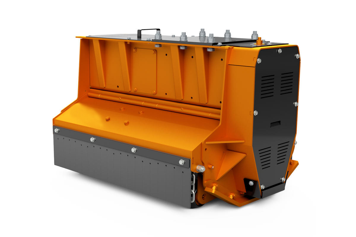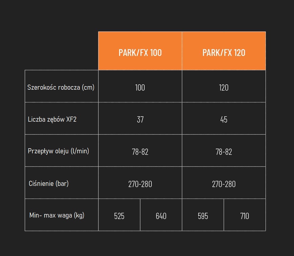 Mulczer serii PARK FX to hydrauliczna głowica mulczująca do koparek masie roboczej od 8 do 11 ton, przeznaczona do koszenia trawy, trzciny, jeżyn, krzewów i krzewinek o średnicy do 12 cm.