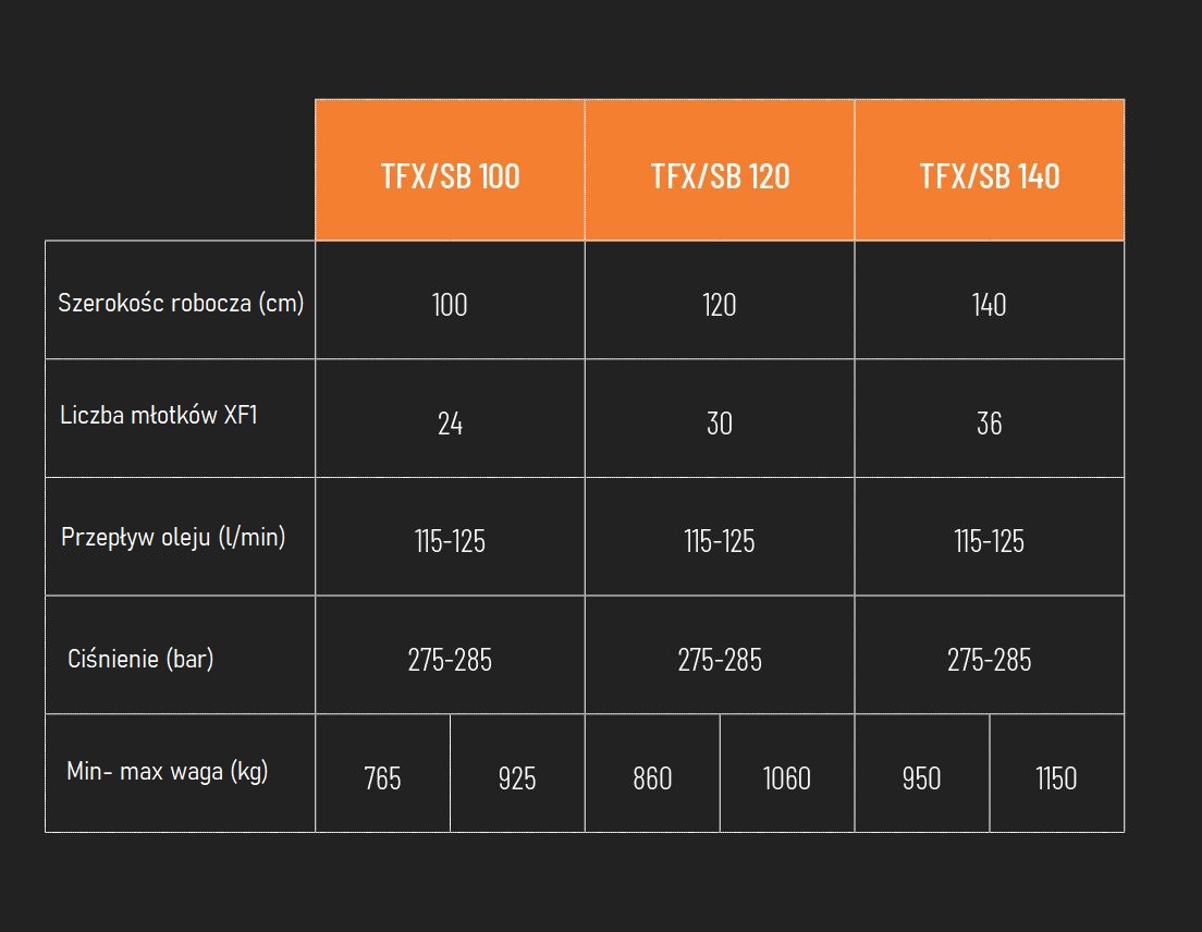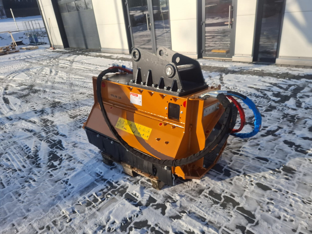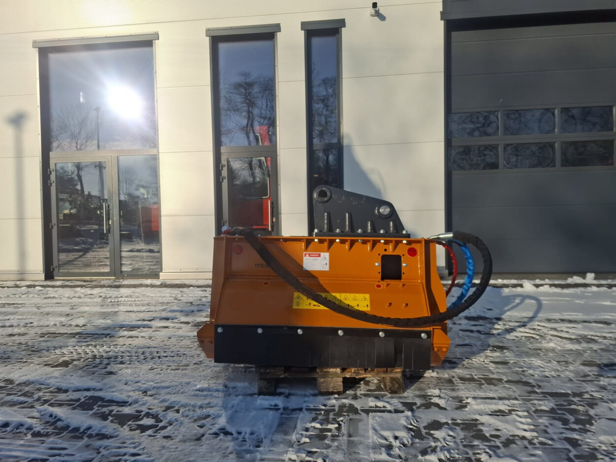 Mulczer serii TFX SB to hydrauliczna głowica mulczująca do koparek masie roboczej od 12 do 16 ton, przeznaczona do koszenia trawy, trzciny, jeżyn, krzewów i krzewinek o średnicy do 18-20 cm.